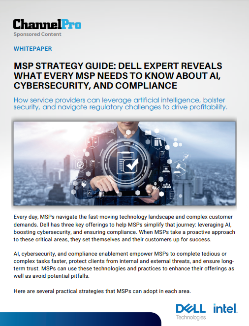 Every day, MSPs navigate the fast-moving technology landscape and complex customer demands. Dell has three key offerings to help MSPs simplify that journey: leveraging AI, boosting cybersecurity, and ensuring compliance. When MSPs take a proactive approach to these critical areas, they set themselves and their customers up for success.